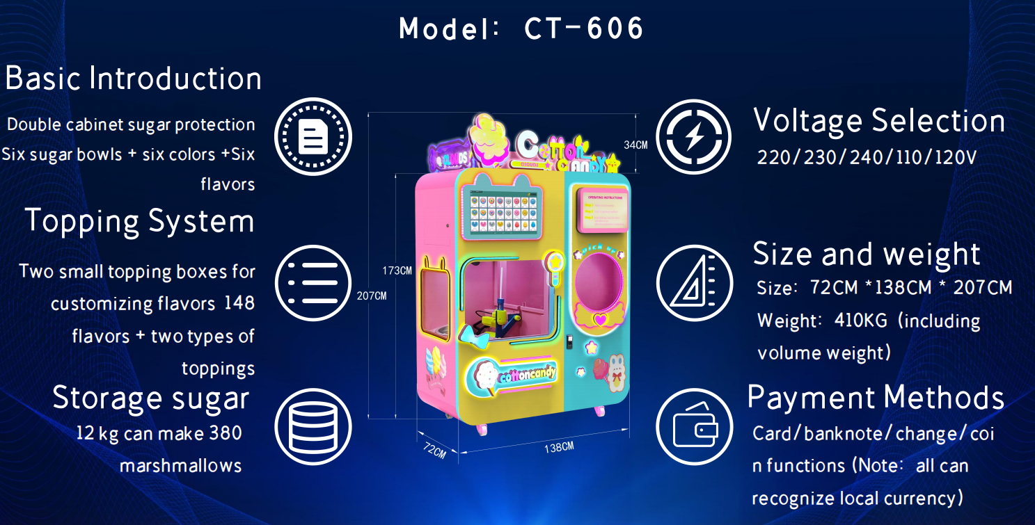 Capacity: 6 containers totaling 12KG, can be filled to make 380 candies